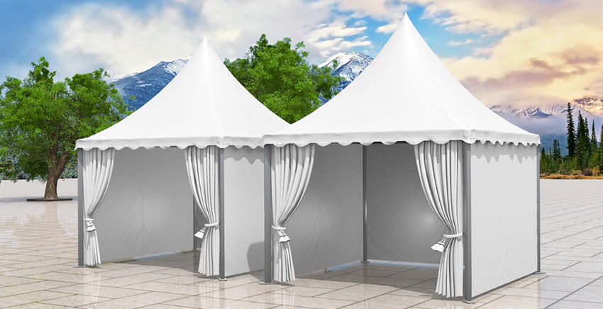 尖頂篷房有多種可供選購的配置,例如:玻璃墻體、玻璃門、地臺板、布幔內飾等。尖頂篷房除了單獨使用外,還可以將它用排水槽連接起來組成更大的面積,形成多樣的造形,在戶外活動應用中更加精彩。
